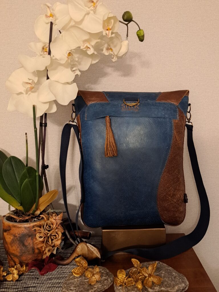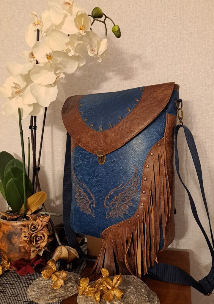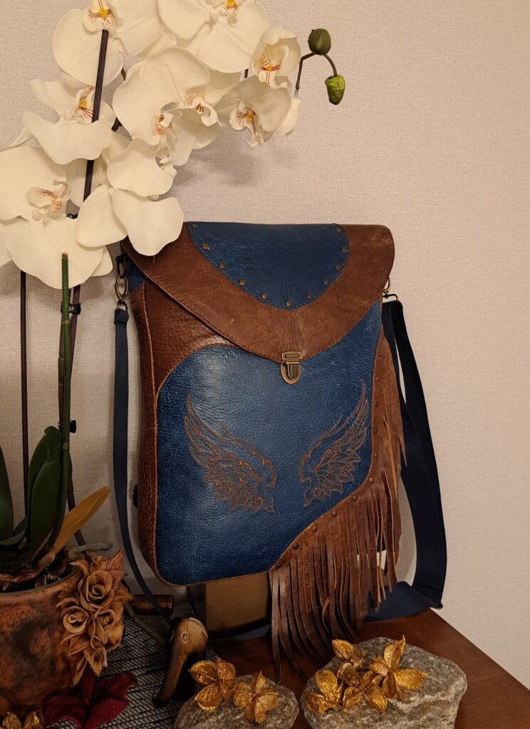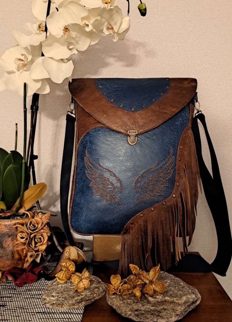 Naturaalnahast shamanistlik õlakott eriliste tikanditega. Kõik kotid on valminud käsitööna ning on kantavad nii õlakoti kui ka seljakotina. Kvaliteetsed lukud ning õmblused annavad luksusliku noodi ning lisataskud ja disainelemendid rikastavad toodet veelgi.