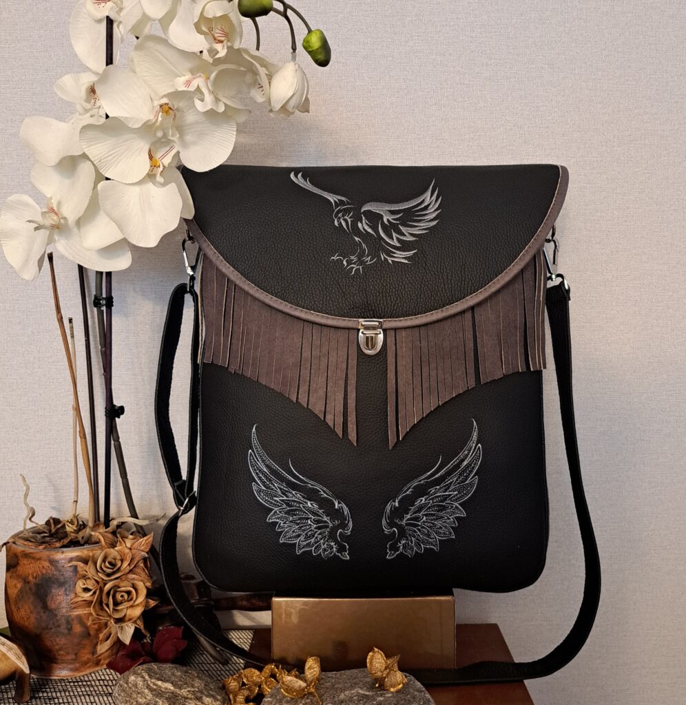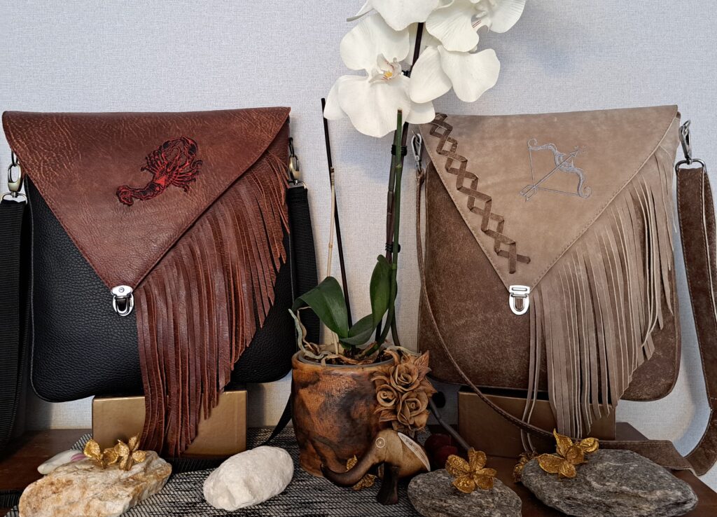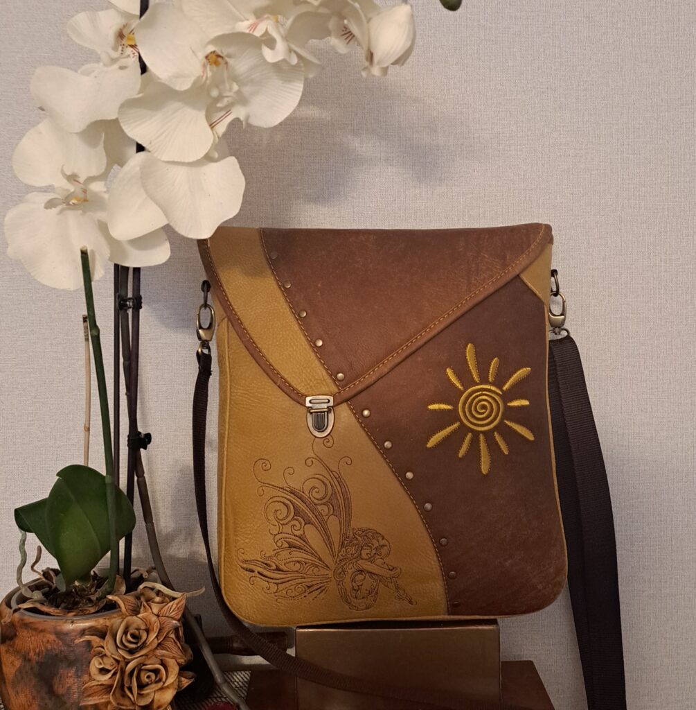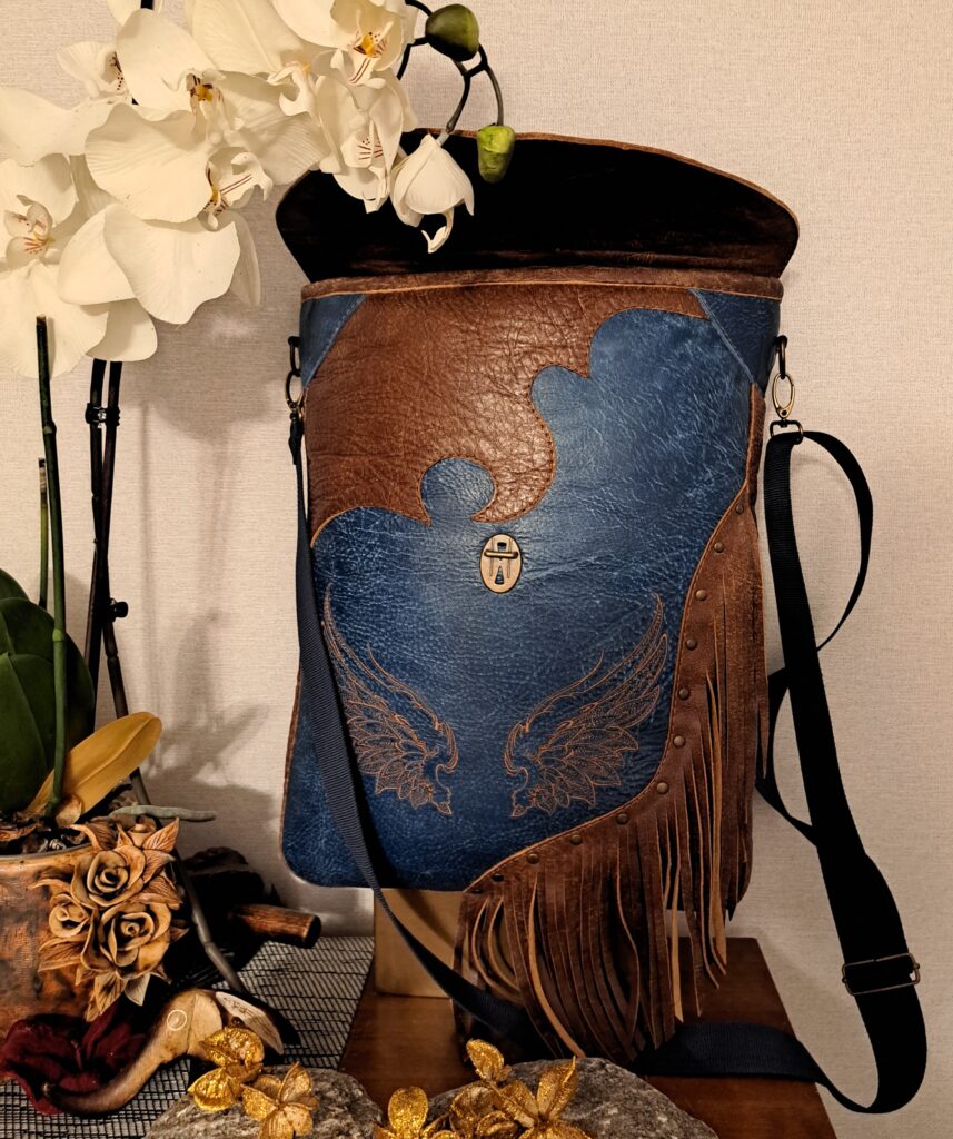 Naturaalnahast shamanistlik õlakott eriliste tikanditega. Kõik kotid on valminud käsitööna ning on kantavad nii õlakoti kui ka seljakotina. Kvaliteetsed lukud ning õmblused annavad luksusliku noodi ning lisataskud ja disainelemendid rikastavad toodet veelgi.